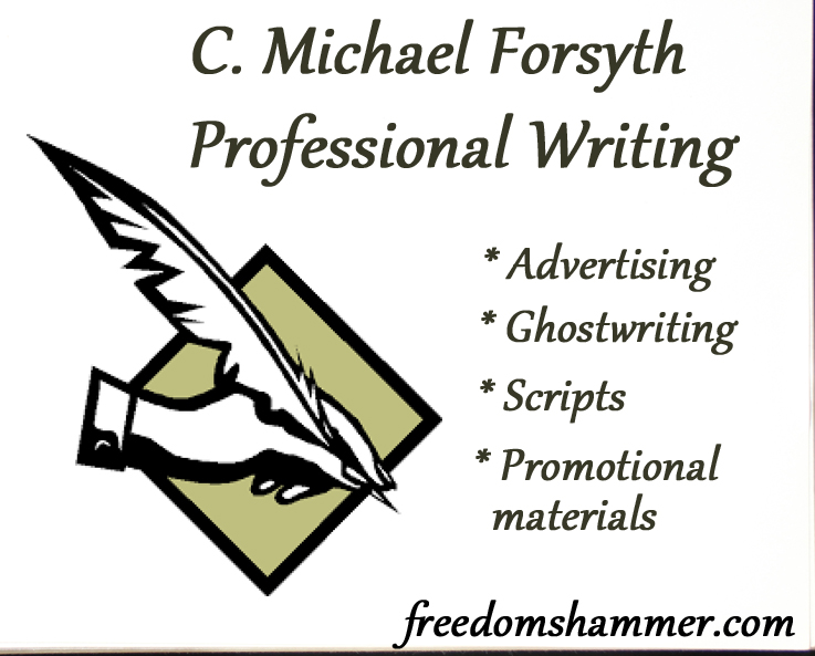 | Forsyth, who has 30 years of experience under his belt as a professional writer, is available to pen whatever you need, including advertising copy, scripts, ghostwriting, and promotional materials. He worked for several years in corporate communications, for clients in a variety of industries, ranging from Clairol to McGraw-Hill and American Express. |  |