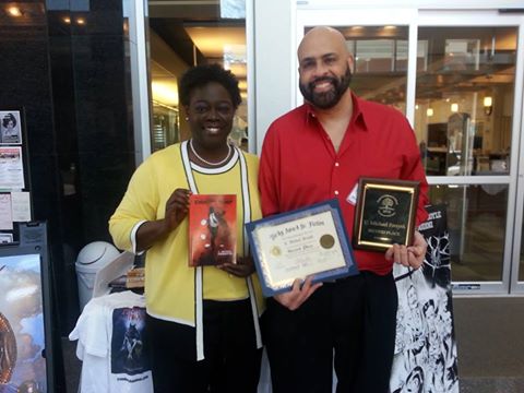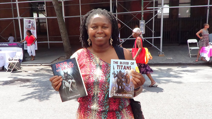 Author C. Michael Forsyth was a vendor at the Harlem Book Fair on July 20, 2013, and spent time with award-winning playwright J.E. Franklin, who gave him advice and encouragement in writing The Blood of Titans.