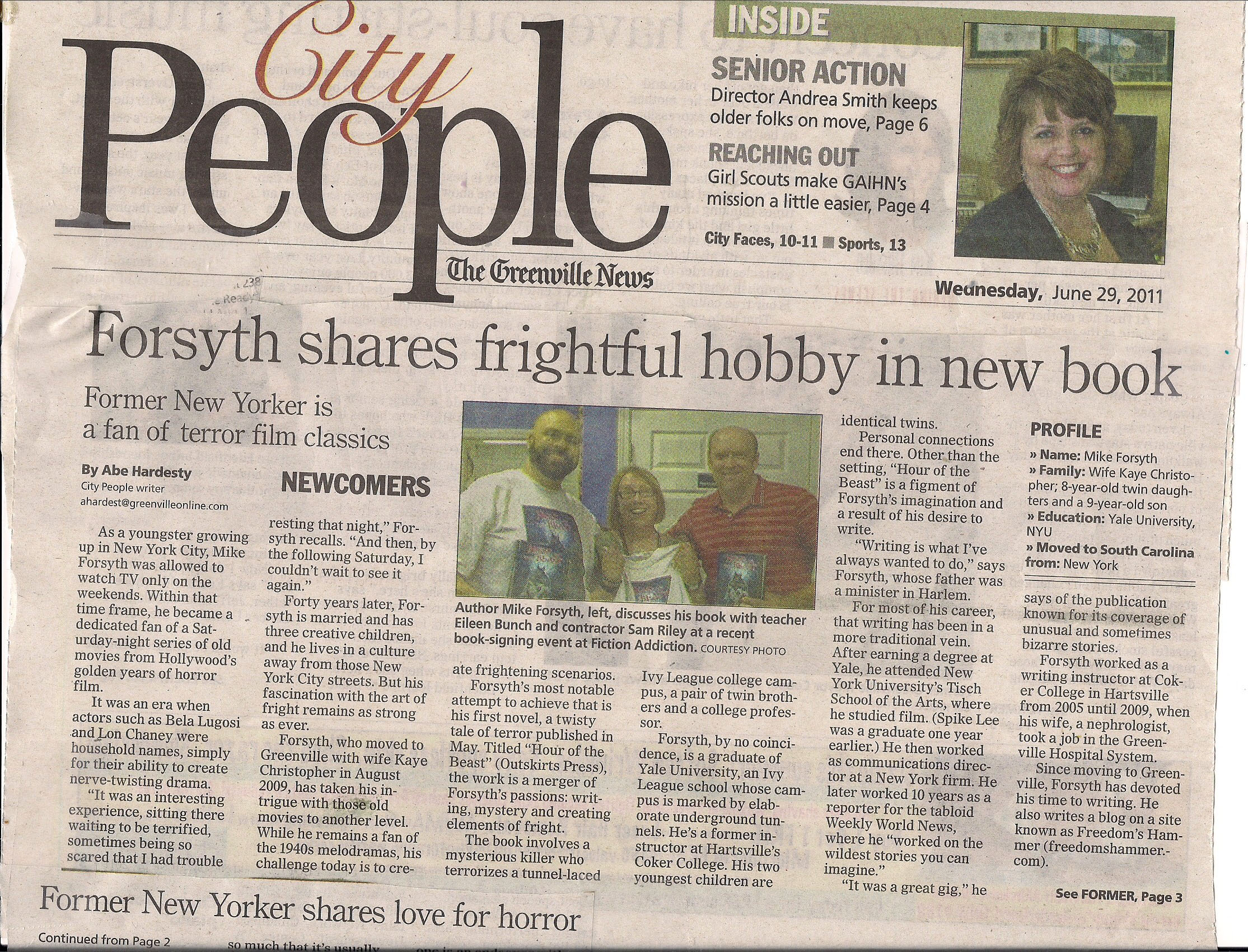 Author C. Michael Forsyth got to  hang out with legendary actor Chris Sarandon, star of the original "Fright Night" and "Child's Play" at the Mad Monster Party horror convention in Charlotte, N.C., in March 2012.  WEB TV INTERVIEW WITH C. MICHAEL FORSYTH AT NEW YORK COMIC-CON.